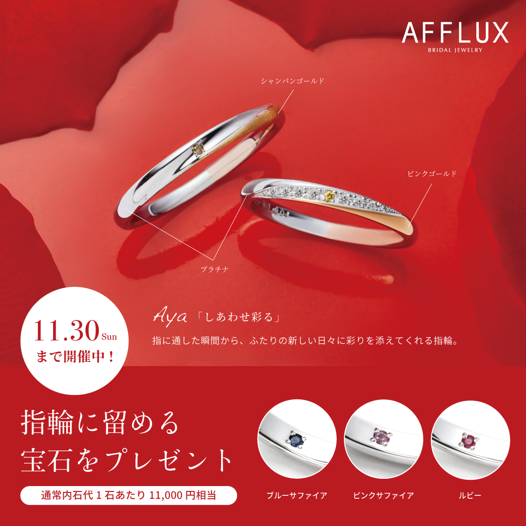 11月30日までの期間中にAFFLUXのリングをご成約いただいた方に
