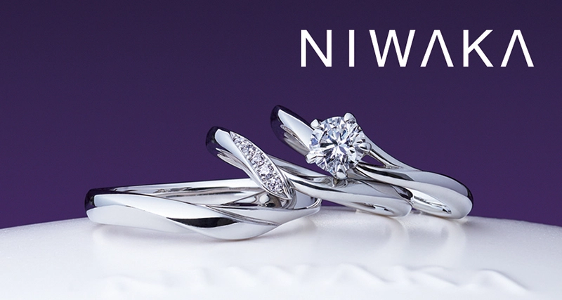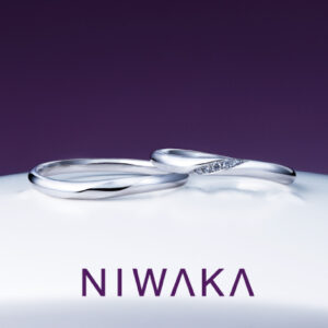 千二百年の歴史を持つ京都で誕生した 『 俄 – NIWAKA – 』。 NIWAKAの指輪には、ひとつひとつ名前があり、まるでふたりの思い出のような美しい情景とふたりを祝福する想いが込められています。ハイジュエリーを手掛けるデザイナーの感性によって生み出された美しく精緻なデザインが特徴で、一つひとつの指輪を作品ととらえ、どの角度から見ても美しく見えるよう丹念に製作をしています。