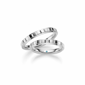 ふたりの素直な気持ちをかたちに。シンプルで真っ直ぐなデザインは、ふたりの未来に続く一途な気持ち。斜めに入った控えめなアクセントが印象的なモデル。